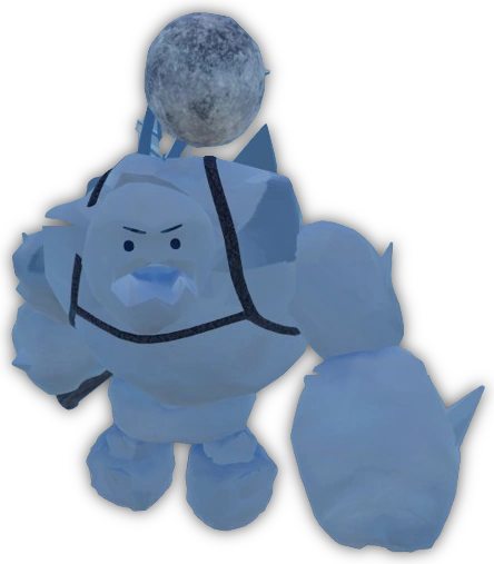 Snowfella serves as the first mandatory boss fight that players must progress through in order to beat the map Michael Barrel. Taking his debut in ALPHA 1.6.0, he can be found in the Michael Barrel trailer. Snowfella resembles an ice-golem of sorts with a harness equipped onto his back. He also wields what looks like cannons on his back and a nun-chuck in his hand that he can swing at players. He will let out a loud roar once Wintiachael wakes him up.